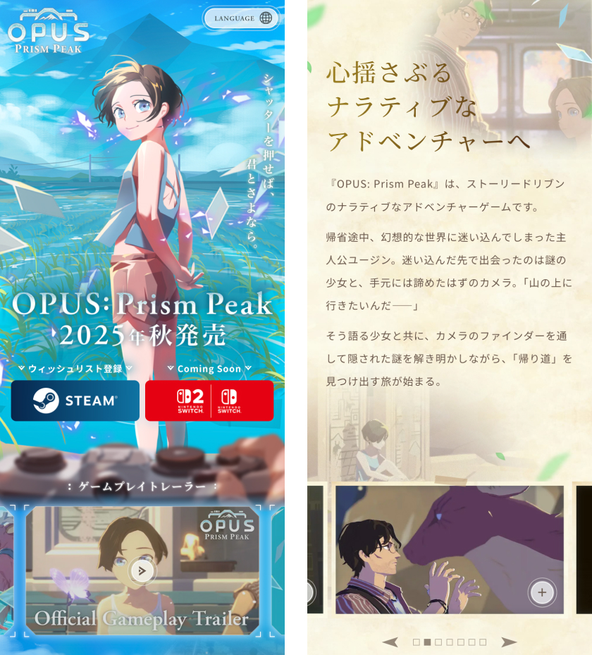 ゲーム『OPUS』シリーズ最新作、「OPUS: Prism Peak」の公式サイトを制作させていただきました。