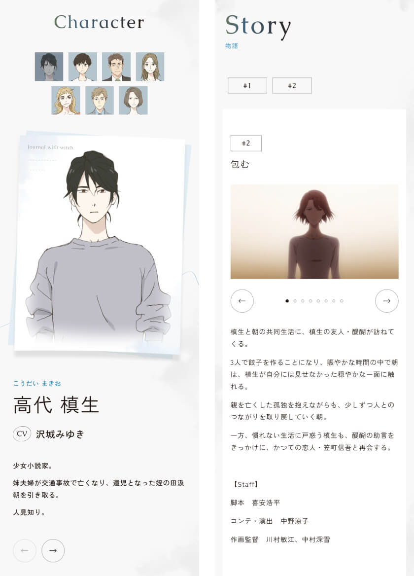 トップにストーリーや登場人物、作品のテーマを整理し、初めて触れる人でも無理なく世界観を理解できる構成を重視しました。
