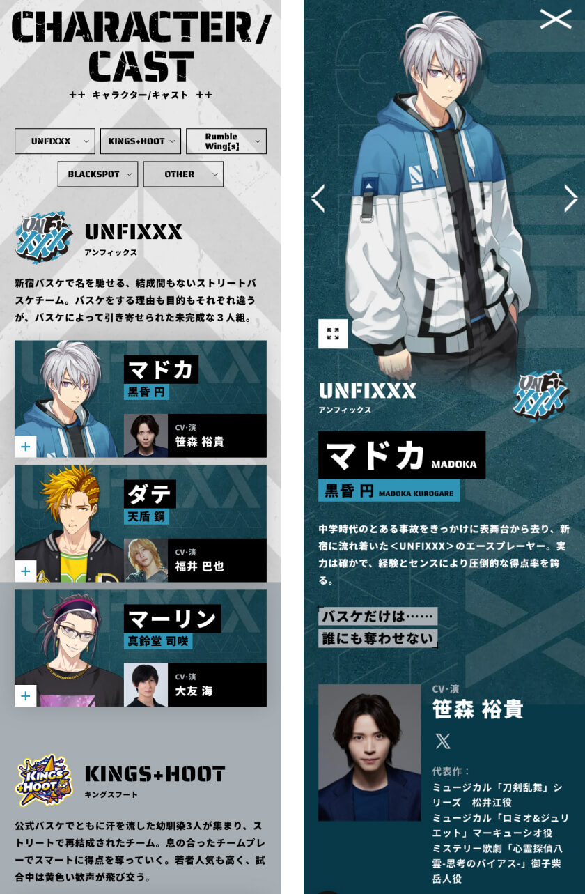 公式ポータルサイトとして、プロジェクトの中核となるキャラクター情報とキャスト情報をまとめて確認できる点も重視しています。登場人物の特徴や関係性、担当キャストを一か所で把握できることで、作品理解を深めやすい構成としました。