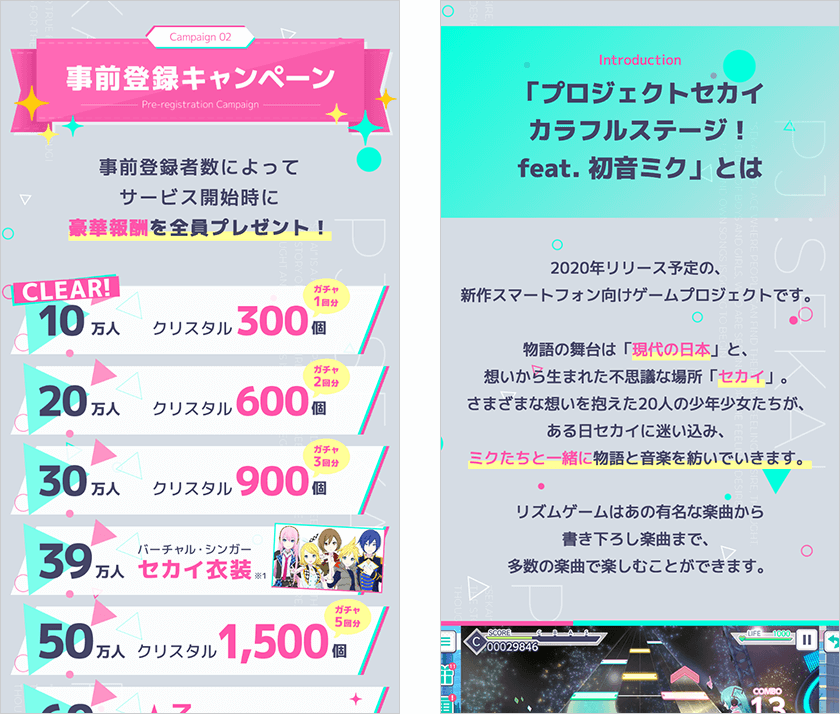 スマートフォンアプリゲーム『プロジェクトセカイ カラフルステージ! feat.初音ミク』の事前登録ページを制作しました。